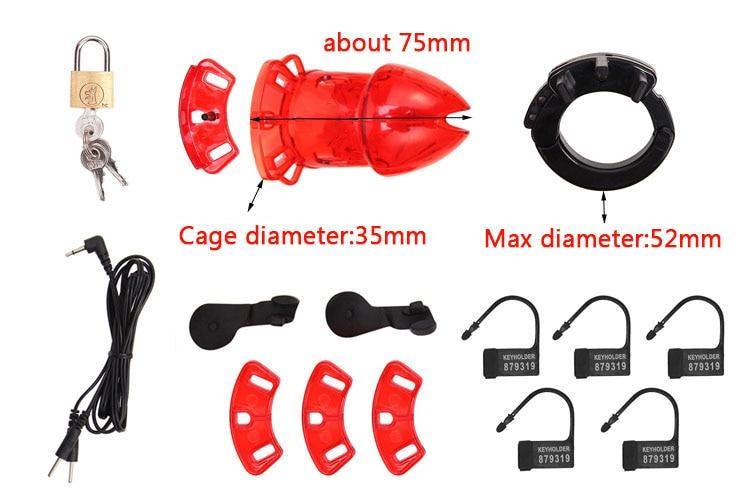 Haben Sie jemals das Gefühl erlebt, durch elektrischen Strom zu fließen? Dies ist dank unseres Keuschheitskäfigs GB 6000 Red für die Elektrostimulation möglich.